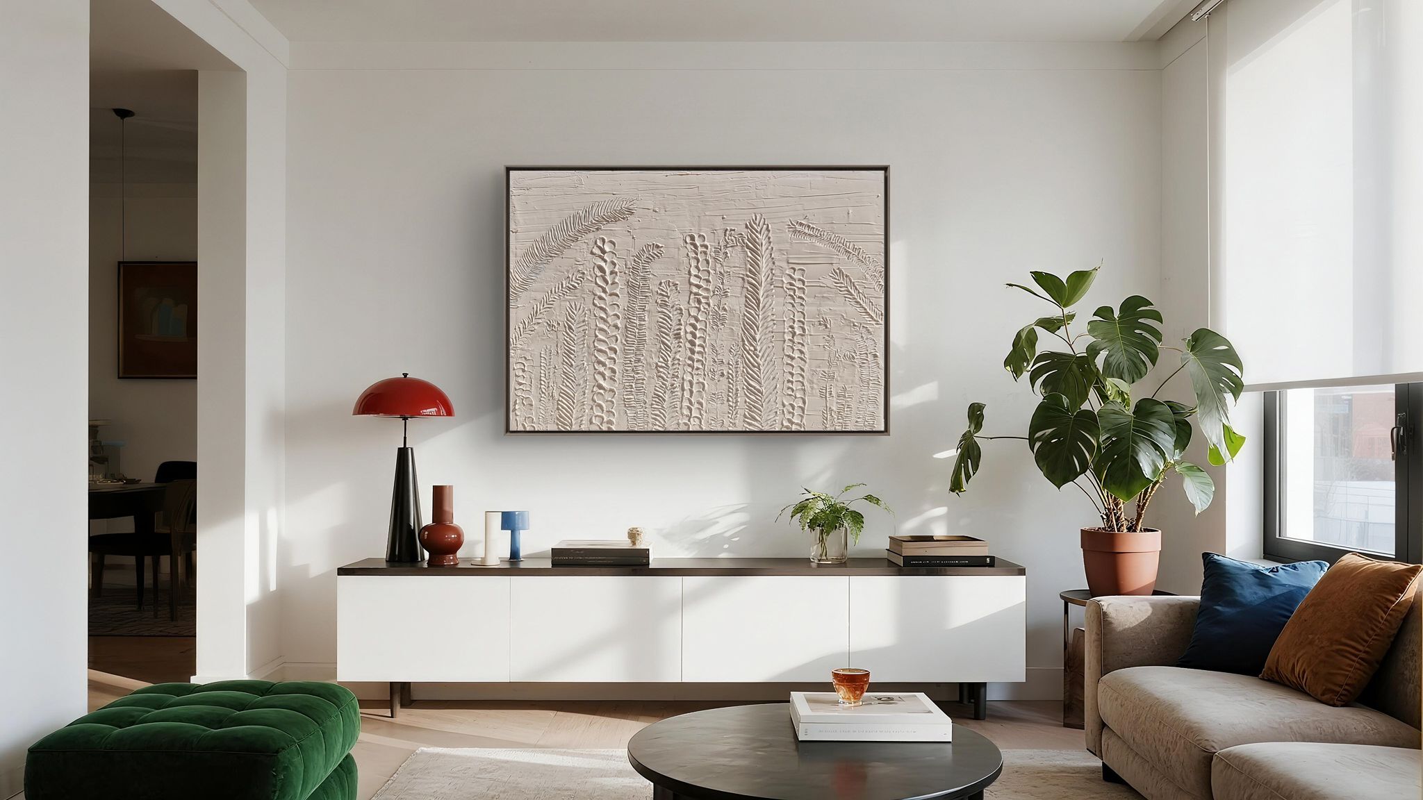 היצירה מעניקה לכל חלל תחושת טבע, רוגע ומינימליזם — עם נוכחות מרשימה ושקטה.